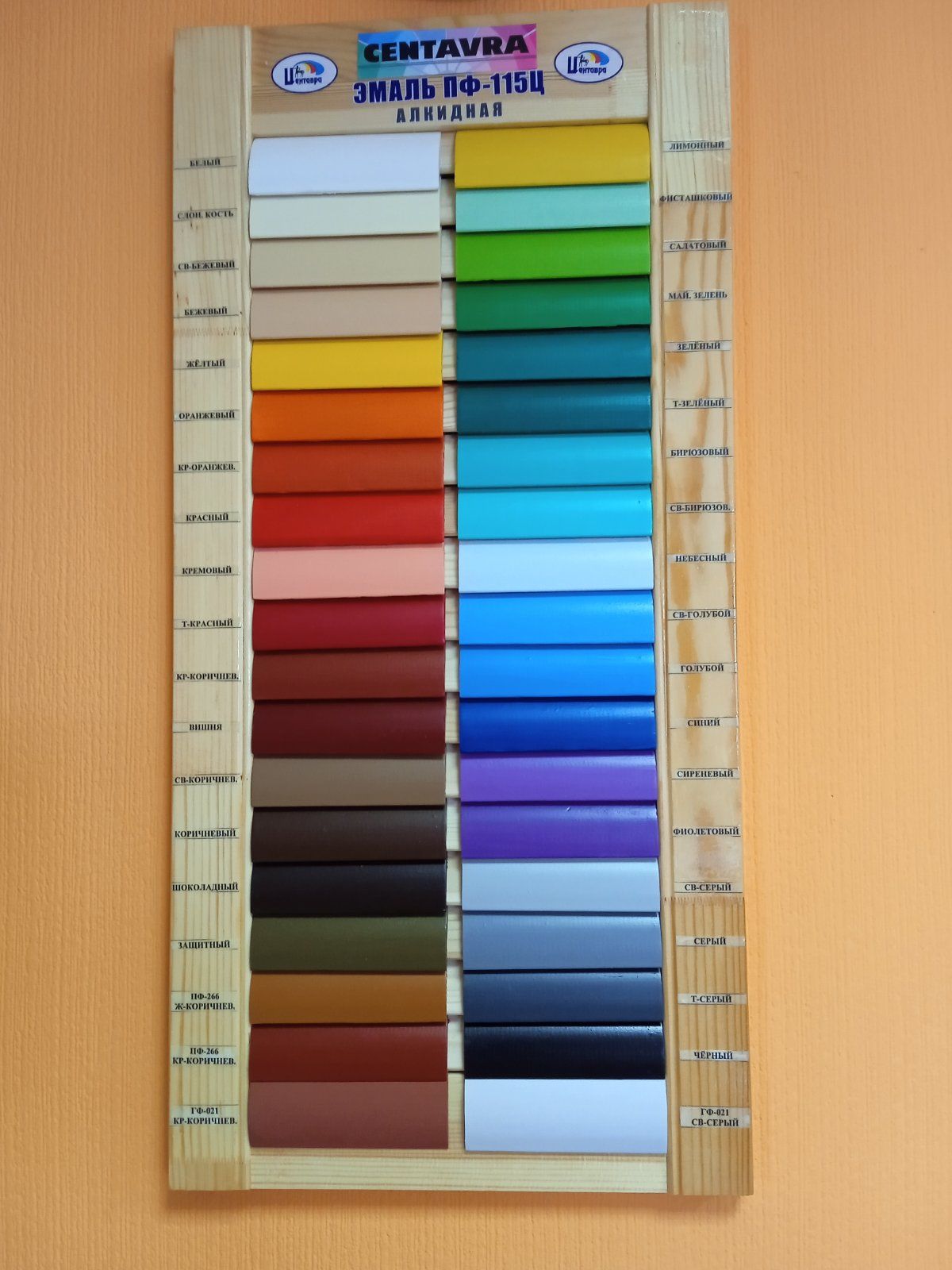 Эмали ПФ-115Ц выполнены в виде суспензии пигментов, качественных наполнителей в специальном пентафталевом лаке, в который добавлены растворители, сиккативы, антиосадители, антиоксиданты, а также незаменимые диспергаторы.