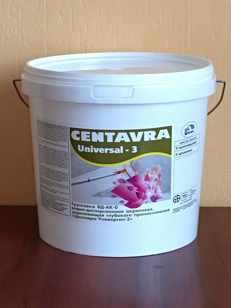 Грунтовка ВД-АК-0 водно-дисперсионная акриловая, укрепляющяя, глубокого проникновения «Центавра-Универсал-3» ТУ BY 100121638.010-2016